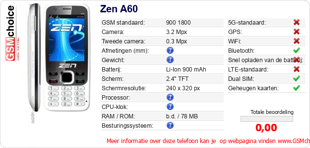 Gegevens van de telefoon Zen A60 op jouw webpagina