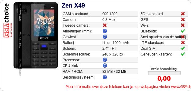 Gegevens van de telefoon Zen X49 op jouw webpagina