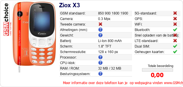 Gegevens van de telefoon Ziox X3 op jouw webpagina