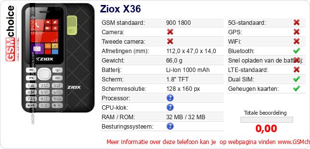 Gegevens van de telefoon Ziox X36 op jouw webpagina