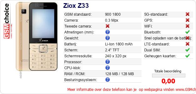 Gegevens van de telefoon Ziox Z33 op jouw webpagina