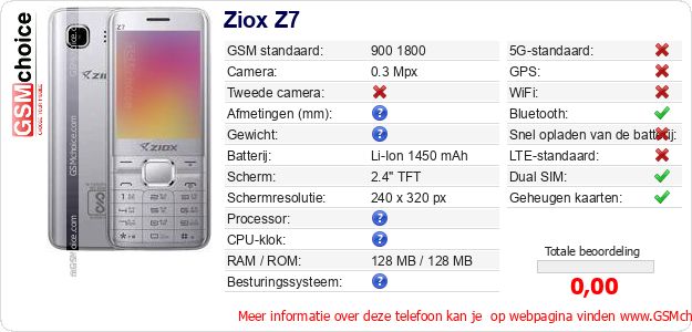Gegevens van de telefoon Ziox Z7 op jouw webpagina