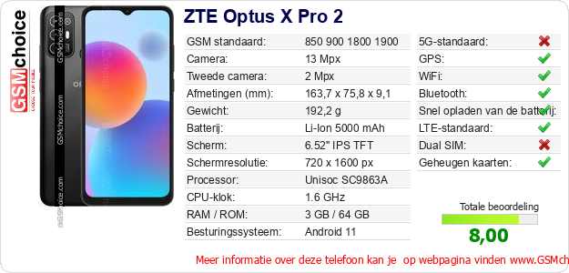 Gegevens van de telefoon ZTE Optus X Pro 2 op jouw webpagina