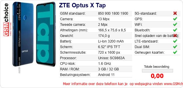 Gegevens van de telefoon ZTE Optus X Tap op jouw webpagina