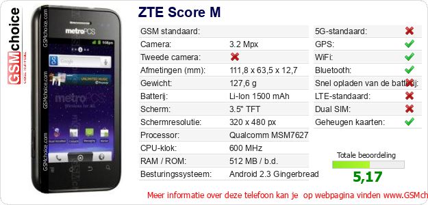 Gegevens van de telefoon ZTE Score M op jouw webpagina