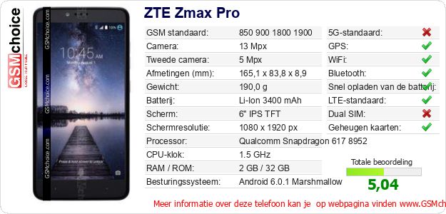 Gegevens van de telefoon ZTE Zmax Pro op jouw webpagina