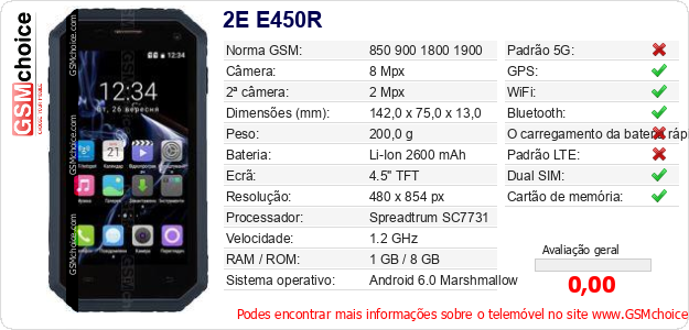 Dados sobre o telemóvel 2E E450R na sua página