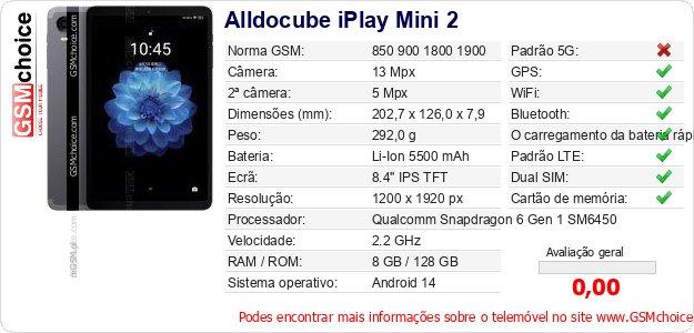 Dados sobre o telemóvel Alldocube iPlay Mini 2 na sua página
