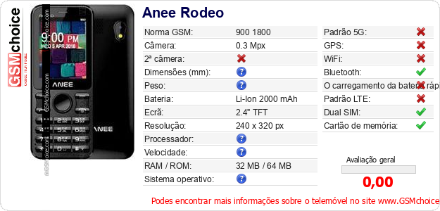 Dados sobre o telemóvel Anee Rodeo na sua página