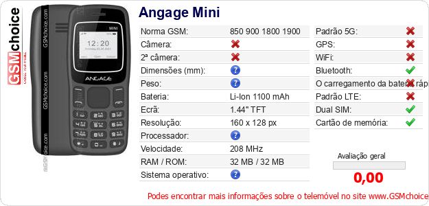 Dados sobre o telemóvel Angage Mini na sua página