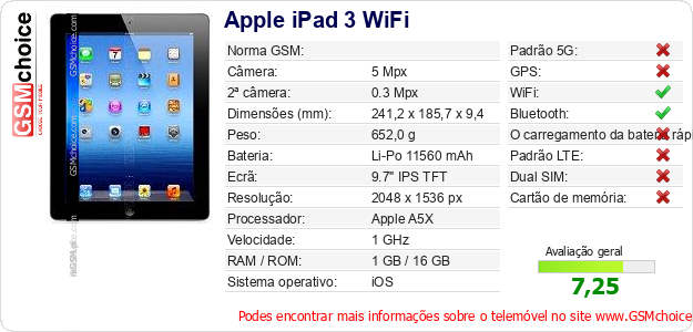 Dados sobre o telemóvel Apple iPad 3 WiFi na sua página