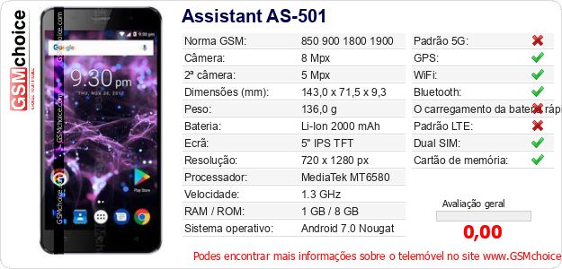 Dados sobre o telemóvel Assistant AS-501 na sua página