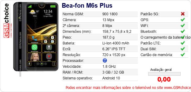 Dados sobre o telemóvel Bea-fon M6s Plus na sua página