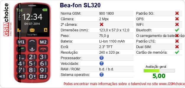 Dados sobre o telemóvel Bea-fon SL320 na sua página
