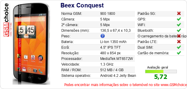 Dados sobre o telemóvel Beex Conquest na sua página