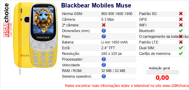 Dados sobre o telemóvel Blackbear Mobiles Muse na sua página