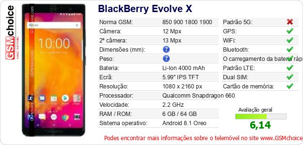 Dados sobre o telemóvel BlackBerry Evolve X na sua página