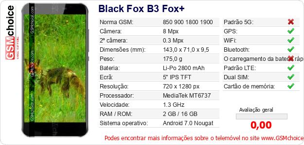 Dados sobre o telemóvel Black Fox B3 Fox+ na sua página