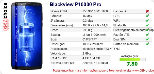 Dados sobre o telemóvel Blackview P10000 Pro na sua página