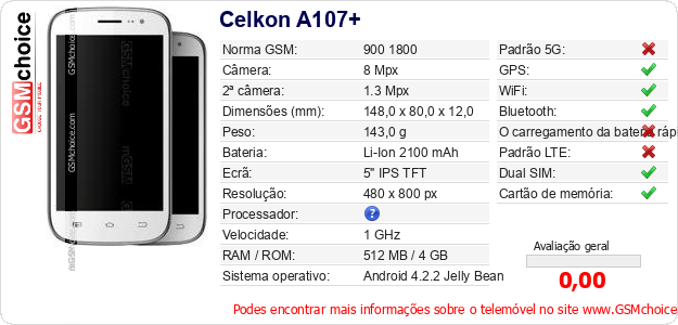 Dados sobre o telemóvel Celkon A107+ na sua página