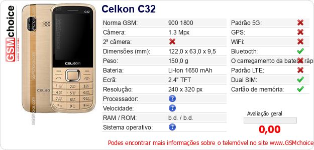 Dados sobre o telemóvel Celkon C32 na sua página