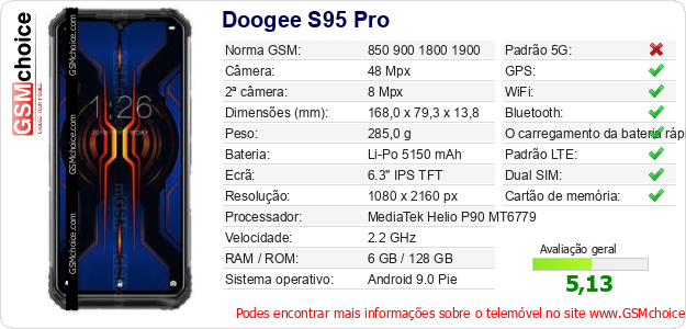 Dados sobre o telemóvel Doogee S95 Pro na sua página