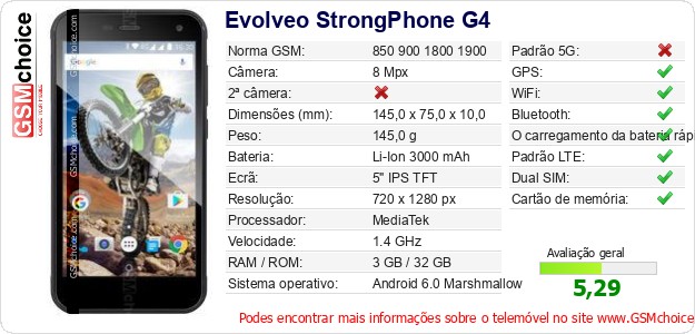 Dados sobre o telemóvel Evolveo StrongPhone G4 na sua página