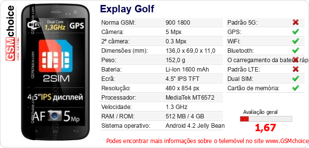 Dados sobre o telemóvel Explay Golf na sua página