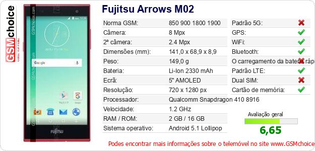 Dados sobre o telemóvel Fujitsu Arrows M02 na sua página