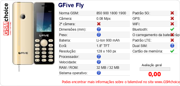 Dados sobre o telemóvel GFive Fly na sua página