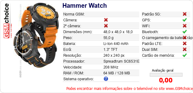 Dados sobre o telemóvel Hammer Watch na sua página