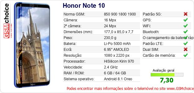 Dados sobre o telemóvel Honor Note 10 na sua página