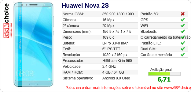 Dados sobre o telemóvel Huawei Nova 2S na sua página