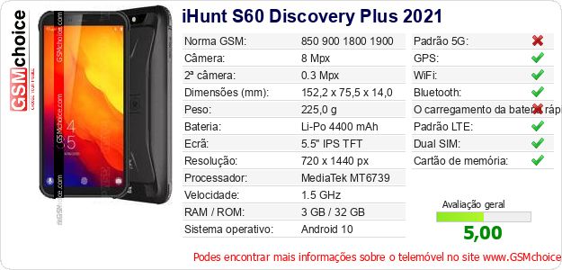 Dados sobre o telemóvel iHunt S60 Discovery Plus 2021 na sua página