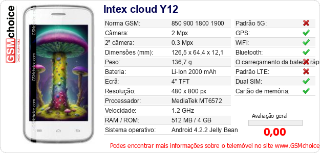 Dados sobre o telemóvel Intex cloud Y12 na sua página