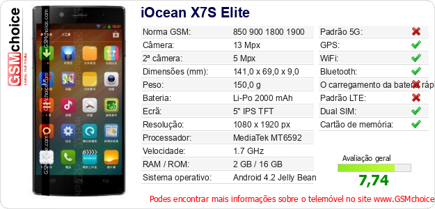 Dados sobre o telemóvel iOcean X7S Elite na sua página