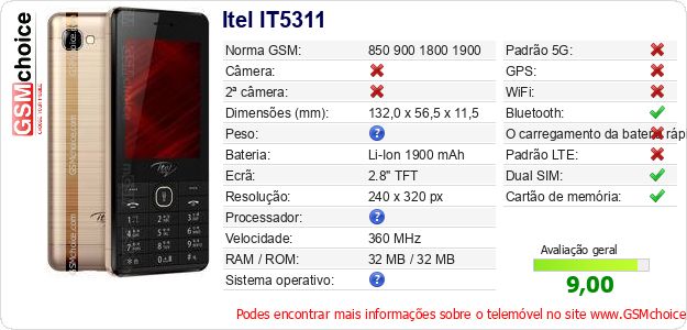 Dados sobre o telemóvel Itel IT5311 na sua página
