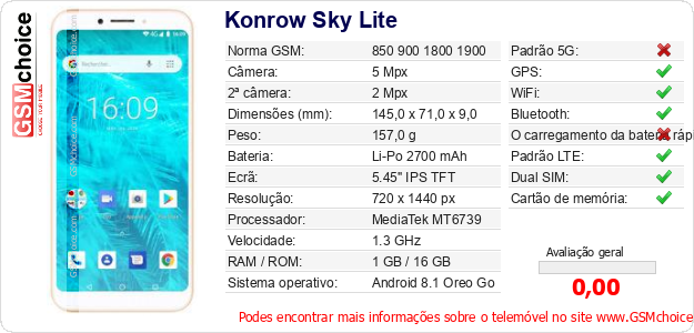 Dados sobre o telemóvel Konrow Sky Lite na sua página