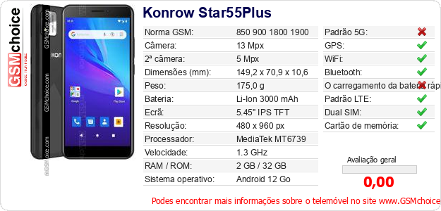 Dados sobre o telemóvel Konrow Star55Plus na sua página