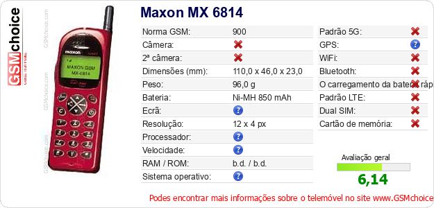 Dados sobre o telemóvel Maxon MX 6814 na sua página