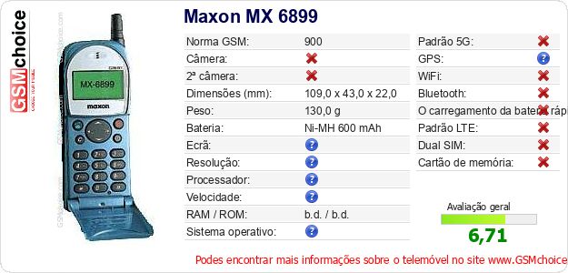 Dados sobre o telemóvel Maxon MX 6899 na sua página