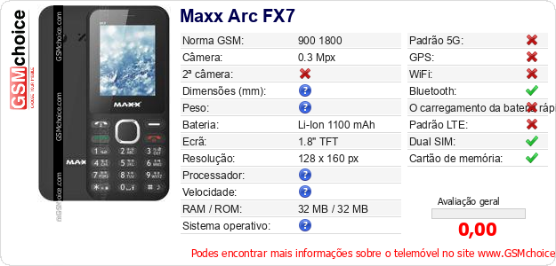 Dados sobre o telemóvel Maxx Arc FX7 na sua página