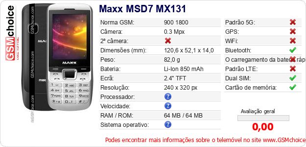 Dados sobre o telemóvel Maxx MSD7 MX131 na sua página