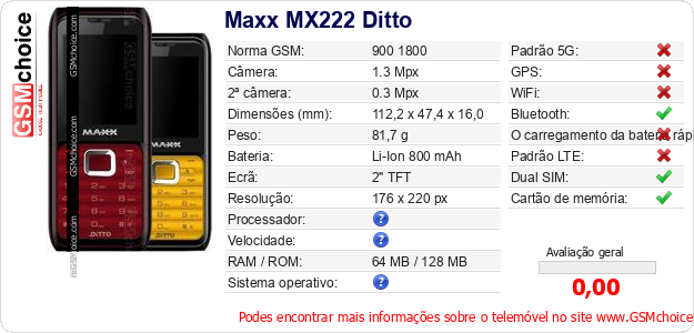 Dados sobre o telemóvel Maxx MX222 Ditto na sua página
