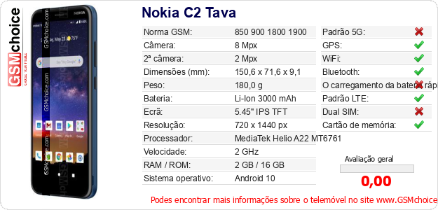 Dados sobre o telemóvel Nokia C2 Tava na sua página
