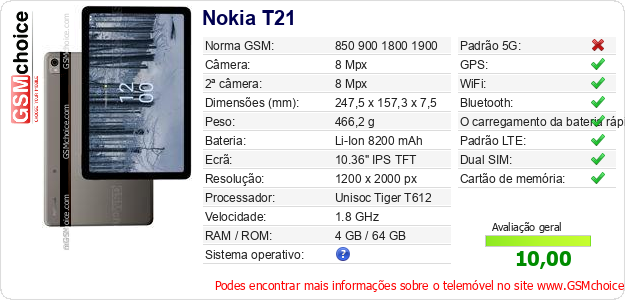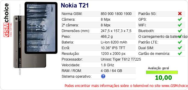 Dados sobre o telemóvel Nokia T21 na sua página
