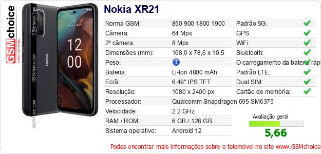 Dados sobre o telemóvel Nokia XR21 na sua página