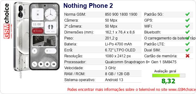 Dados sobre o telemóvel Nothing Phone 2 na sua página