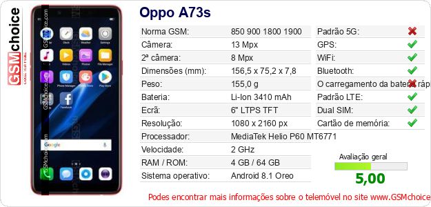 Dados sobre o telemóvel Oppo A73s na sua página
