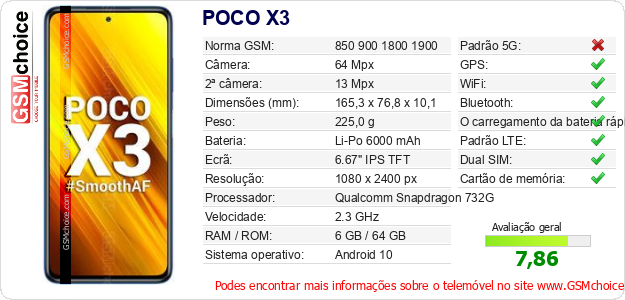 Dados sobre o telemóvel POCO X3 na sua página